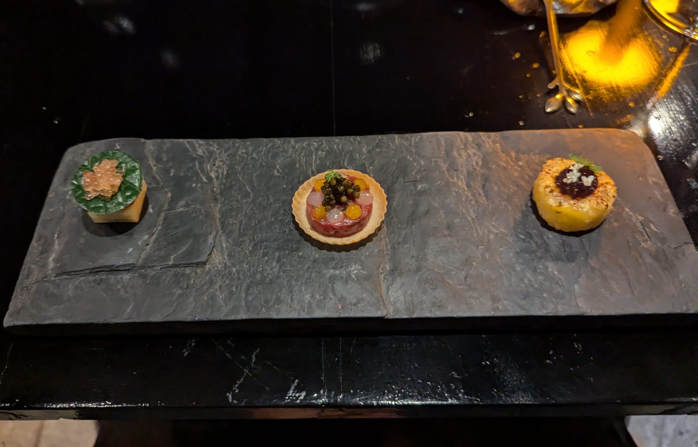 | ・Khaogee Jeow Bong|Lao-Style XO, Charcoal-Grilled Sticky Rice ・Koi Beef Tartare |Darling Downs Australian Wagyu Marble 3, Slow-Cooked Egg Yolk, Kaviari Kristal Caviar ・Son-in-Law Egg|Klong Phai Organic Egg, ShallotTamarindN25 Caviar ・Mieng Kham|Dried Shrimp CaramelBetel LeafGingerLime Caviar |