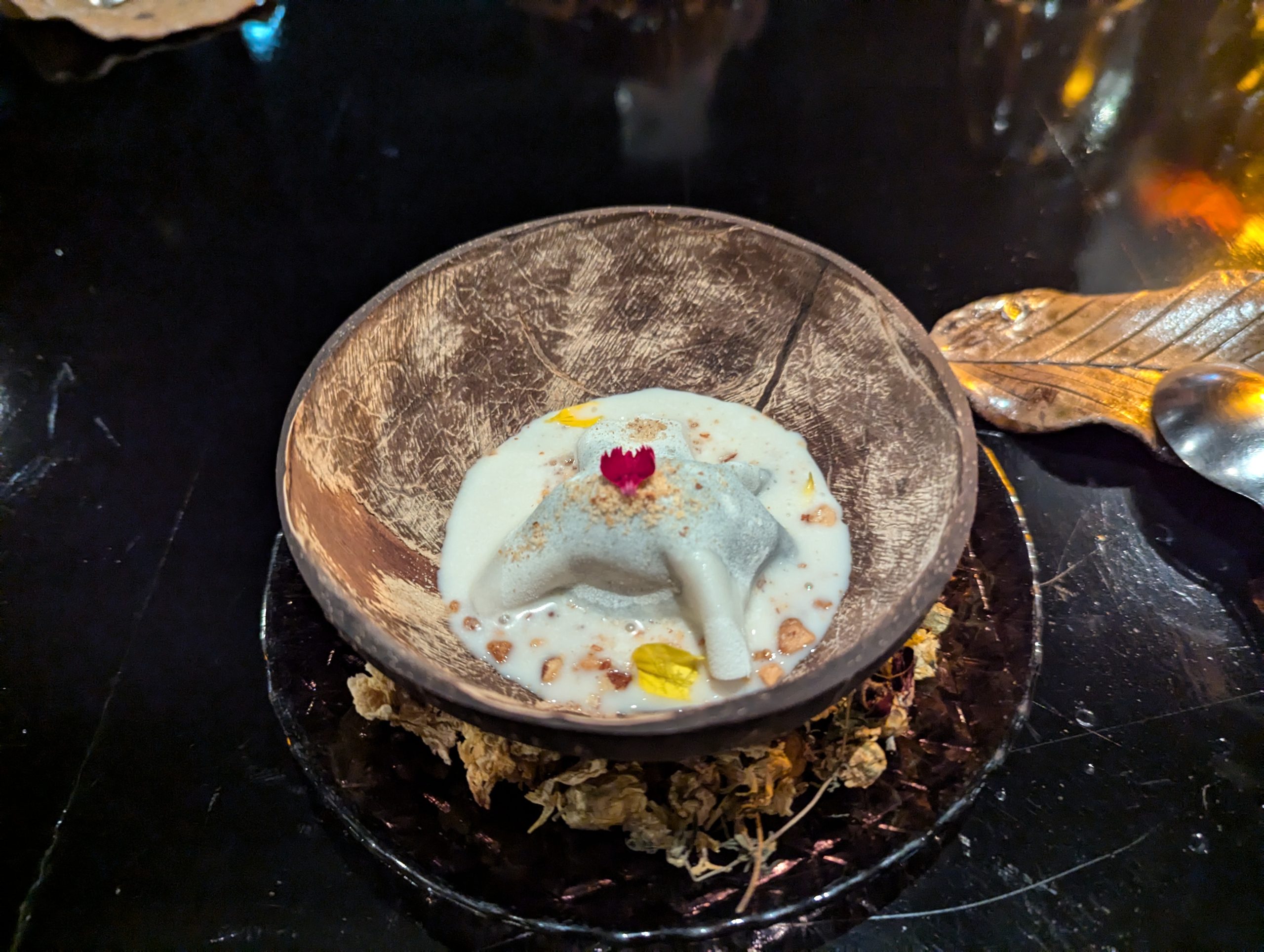 料理についても非常に美味しいく、特に前菜とメインの間に出された「Thai-Prese|Tofu Ice Cream HoraphaBasil Chiang Mai Tomatoes(豆腐のアイスクリーム)」が非常においしく、ほのかな優しい甘さと爽やかな酸味がなんとも言えないバランスを保っていました。
